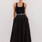 - Mid rise satin maxi skirt