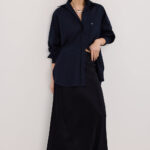 Short sleeve black linen shirt Plunging collared V neckline Statement button closure at front Designed for an oversized. relaxed fit Please see studio image for most […]