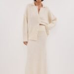 Sleeveless white knit tank top Wide scoop neckline featuring chunky ribbed seams Exposed seam detail at centre back Easy fitting stretch fabrication Please see studio image […]