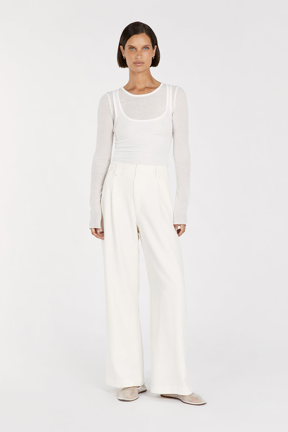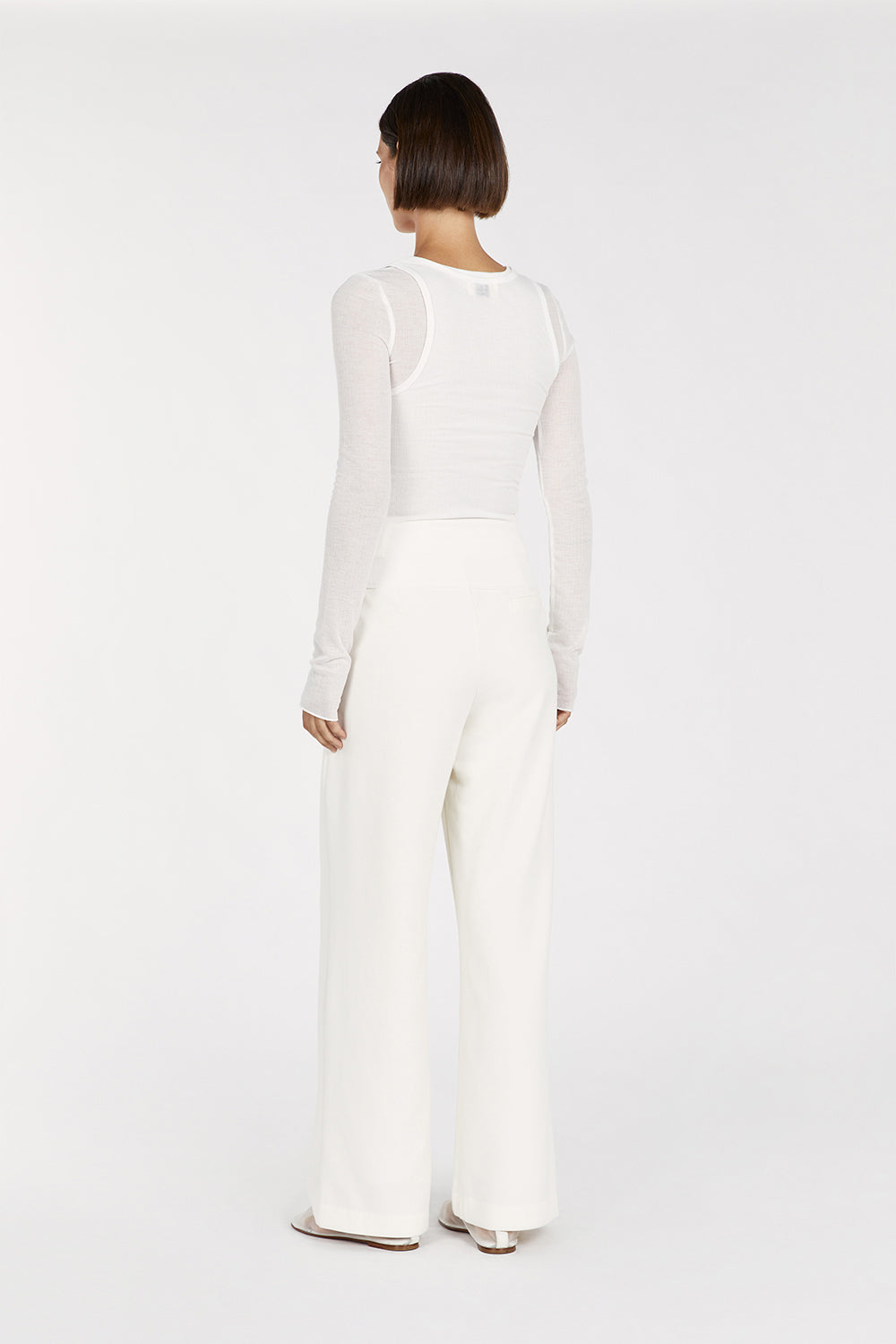 Mid rise sheer white lace skirt Bias cut silhouette Patterned lace fabrication Easy fitting stretch fabrication Invisible side zip closure Please see studio image for most […]