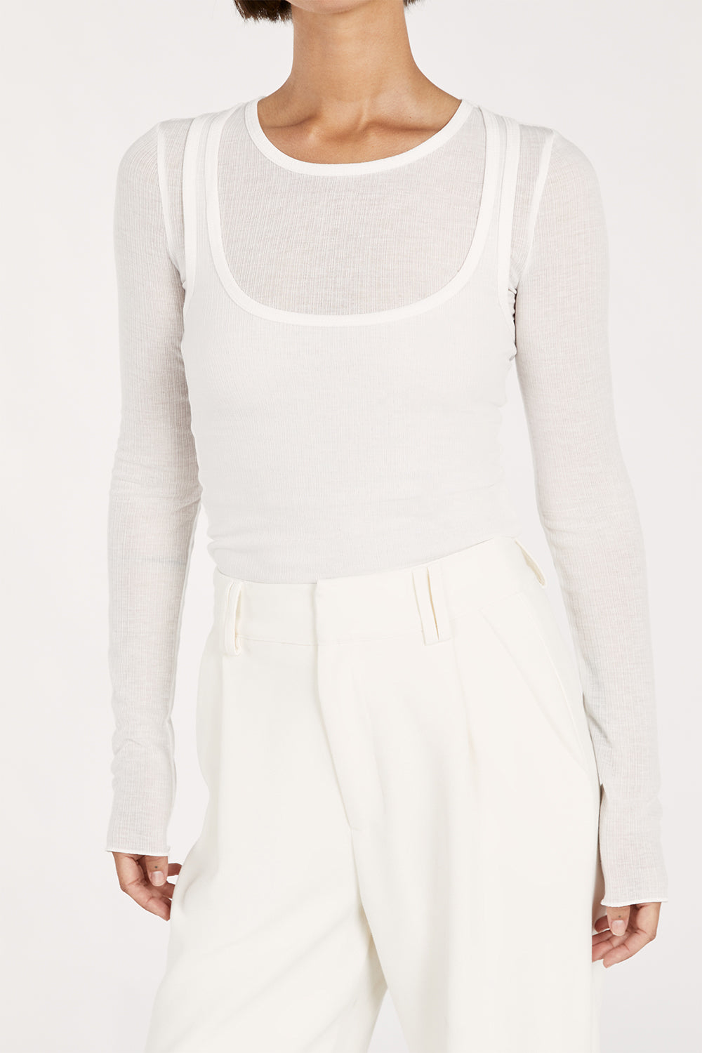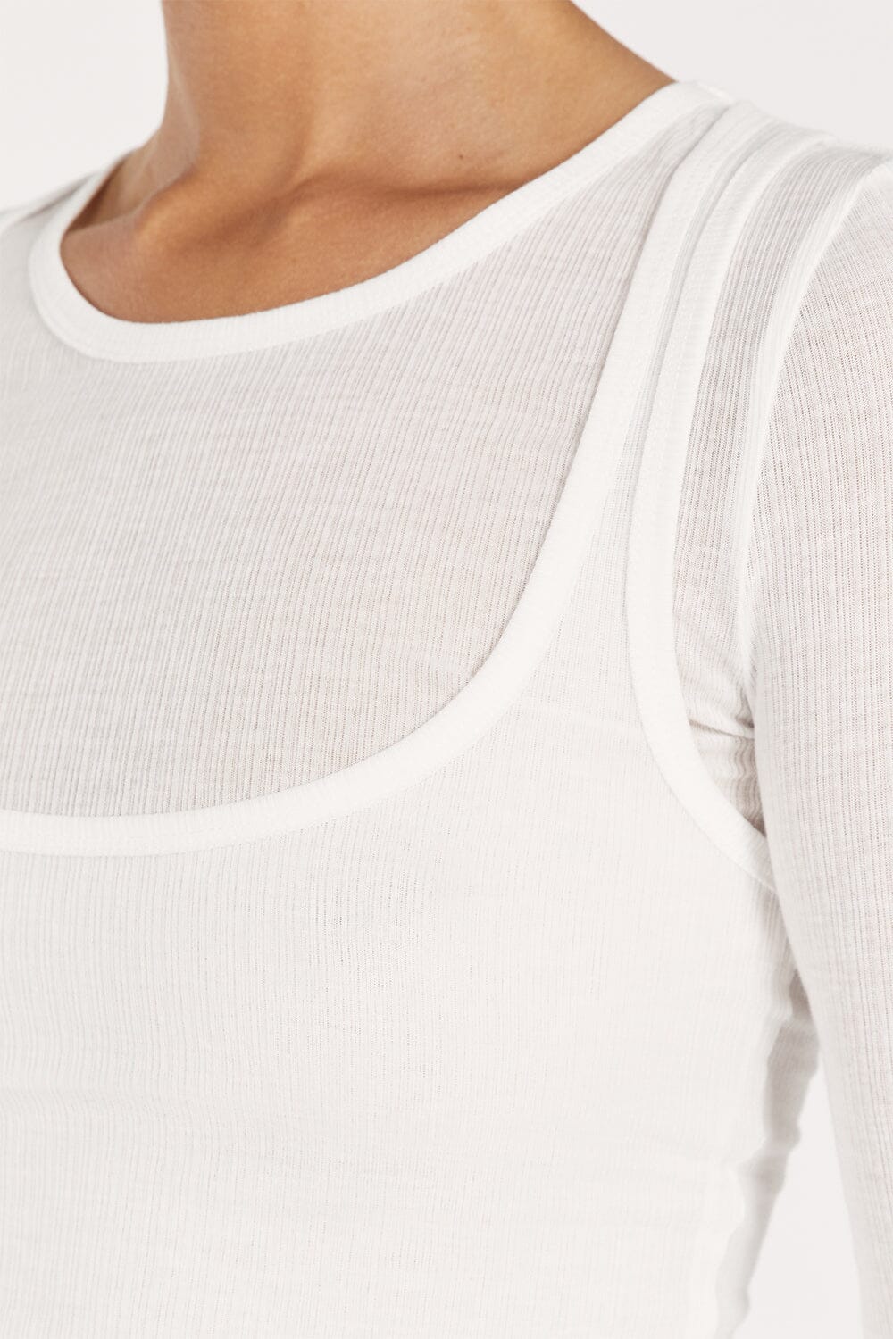 Sleeveless black knit tank top Wide scoop neckline featuring chunky ribbed seams Exposed seam detail at centre back Easy fitting stretch fabrication