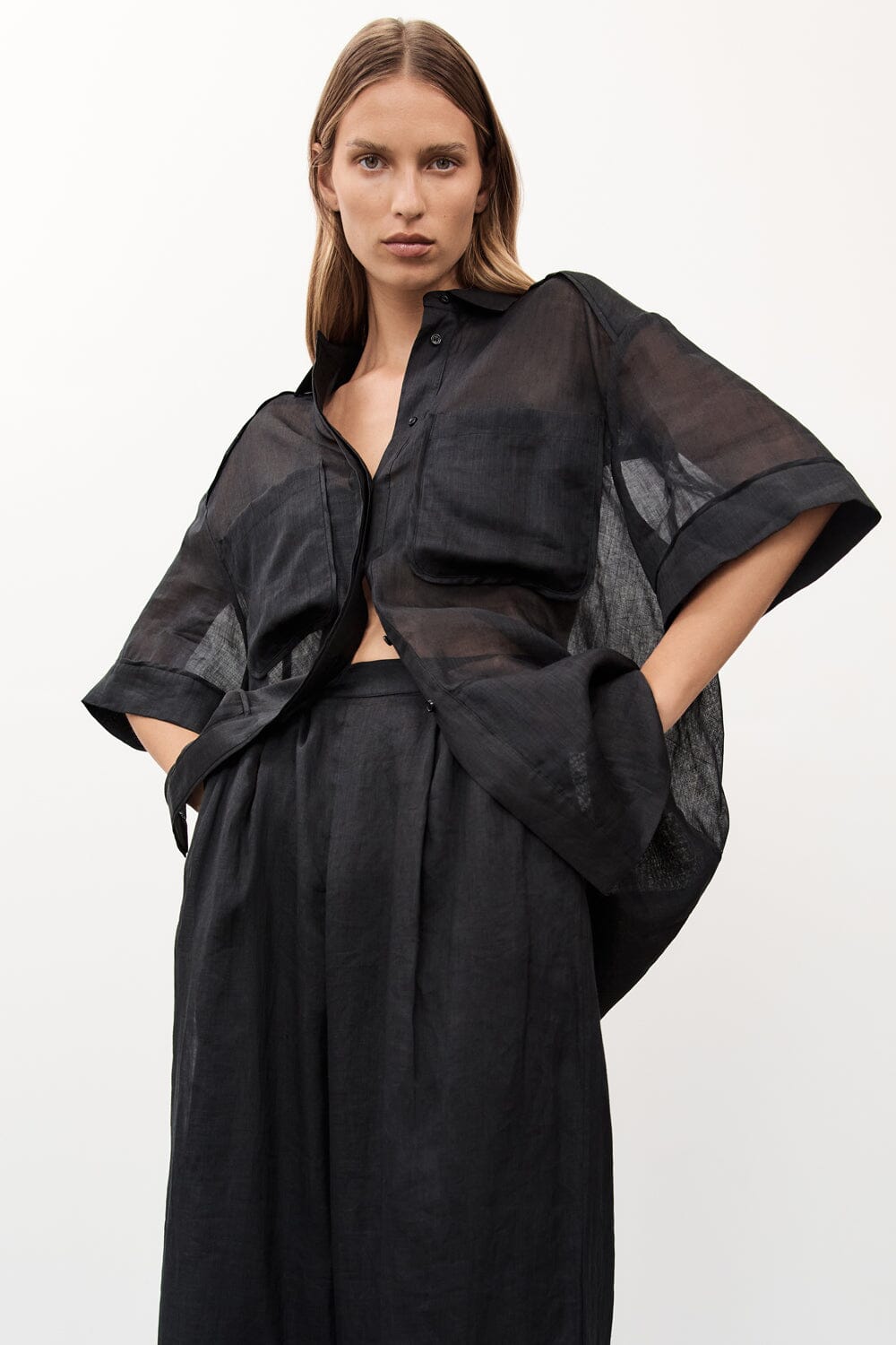 - Longline sheer short sleeve shirt
