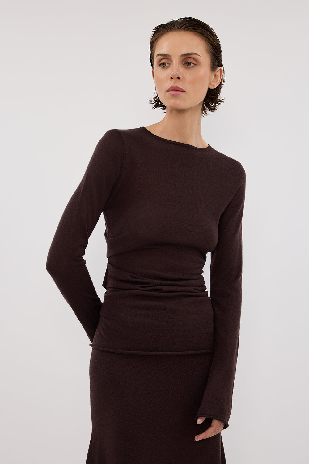 Lightweight. sheer knit long sleeve High neckline Double layer top. Layers can be worn together or separately Semi-sheer. may require further layering