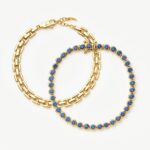Our iconic Tennis Round Bracelet. now in a new emerald green colourway. teamed together with the classic Mini Paperclip Chain Bracelet.